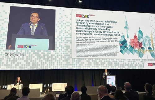 10月21日,AG旗舰厅医药创新药卡瑞利珠单抗(艾瑞卡®)的一项研究“新辅助短程放疗序贯卡瑞利珠单抗联合化疗对比长程放化疗序贯化疗治疗局部晚期直肠癌”随机对照Ⅲ期试验(UNION) 以优选口头报告的形式正式亮相。该研究由华中科技大学同济医学院附属协和医院张涛教授、陶凯雄教授担任主要研究者,华中科技大学同济医学院附属协和医院林振宇教授在马德里现场报告了该重磅研究的结果1,此项研究是全球首个评估短程放疗序贯免疫治疗联合化疗治疗局部晚期直肠癌的Ⅲ期研究,已达到主要终点病理完全缓解(pCR),有望为直肠癌患者的治疗提供新策略。